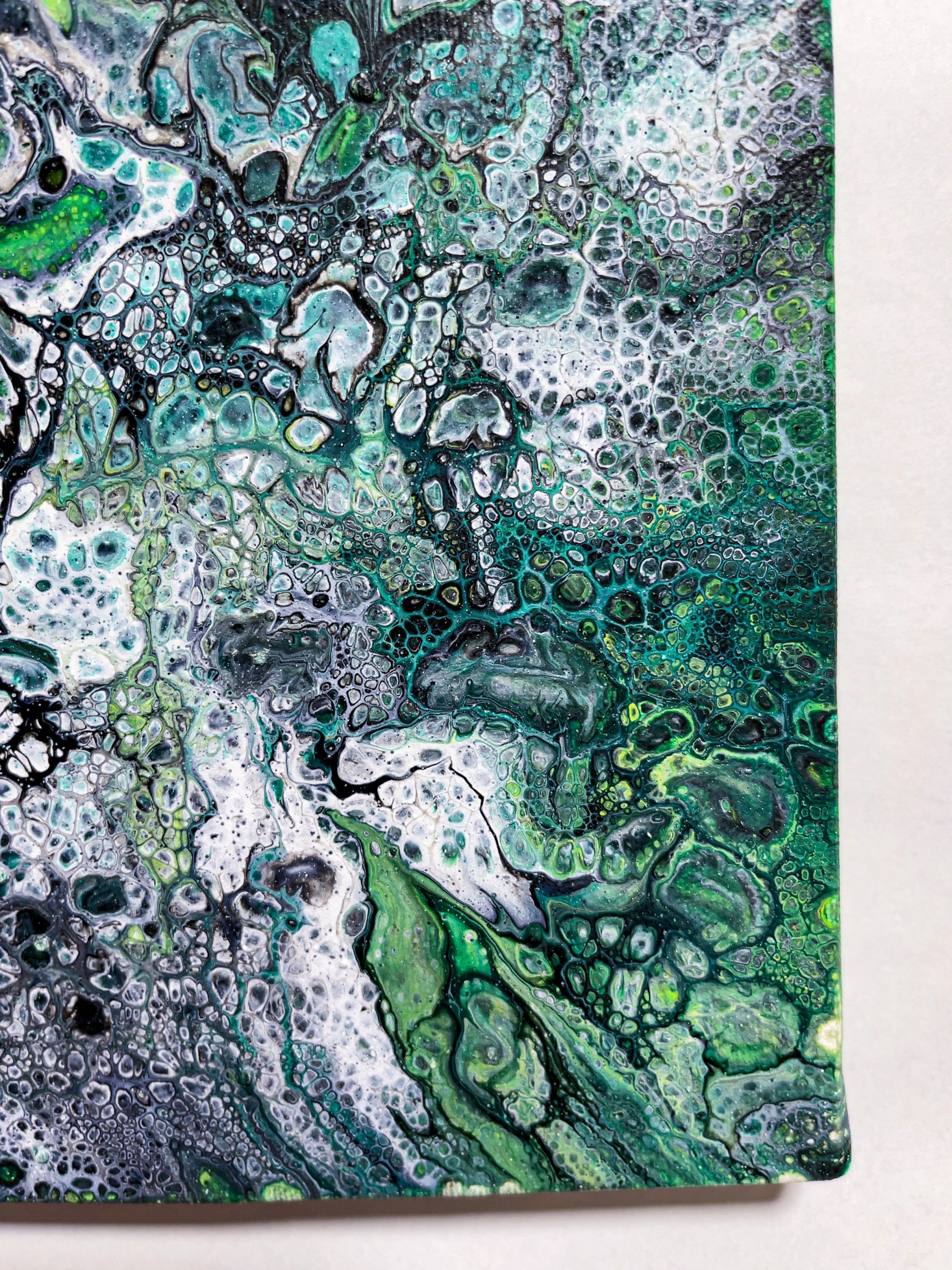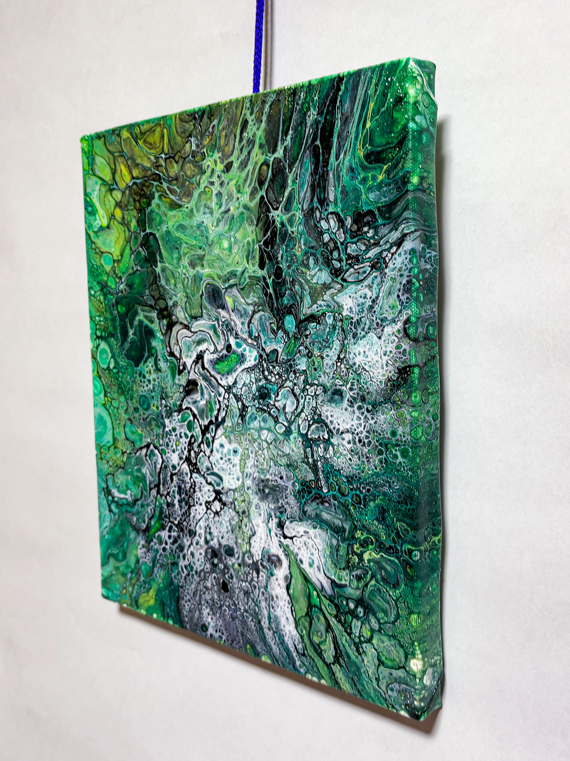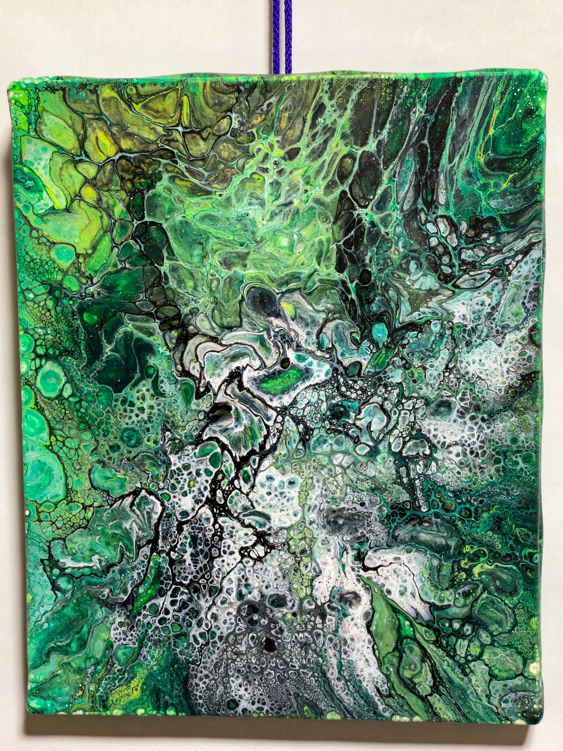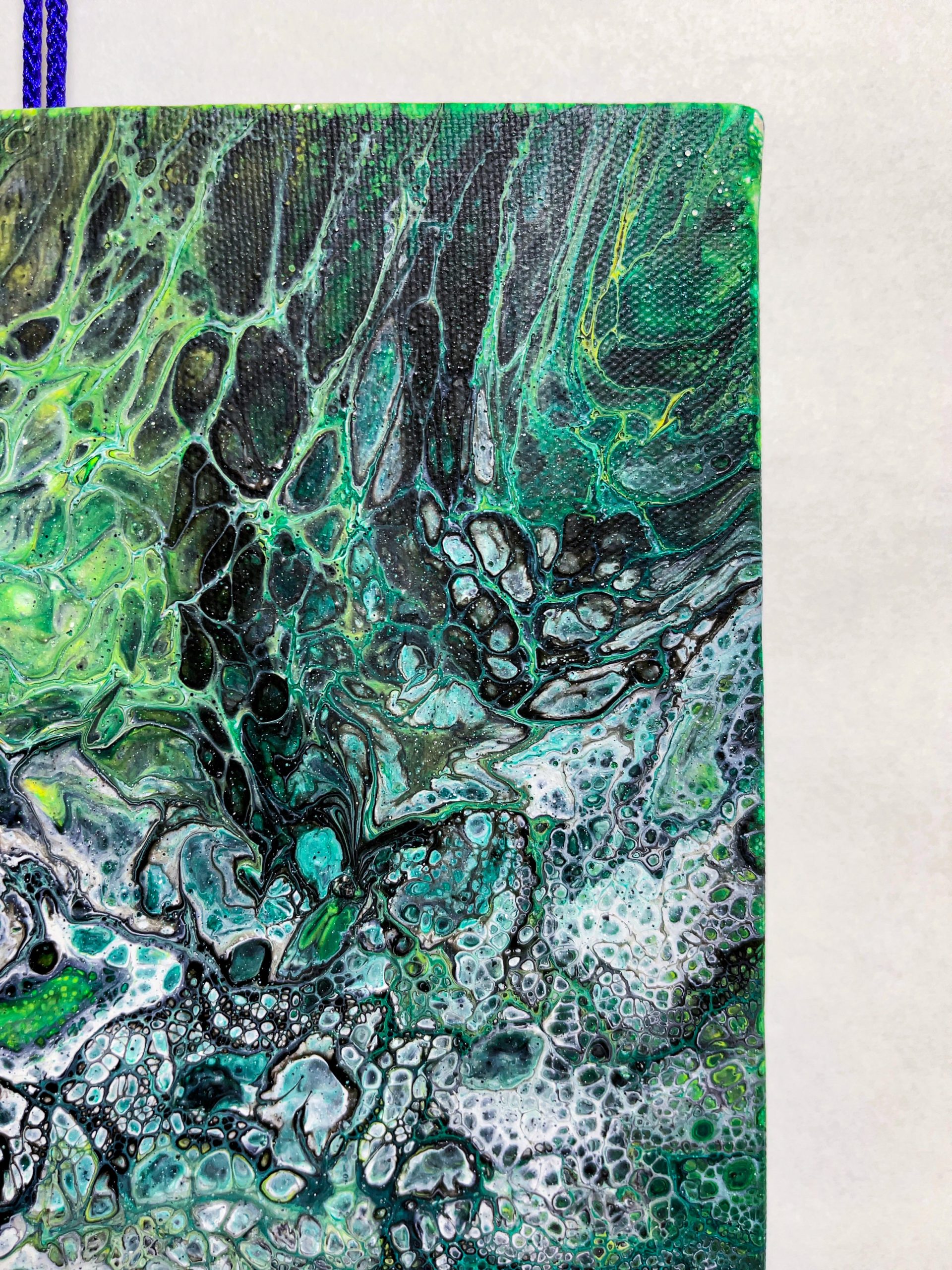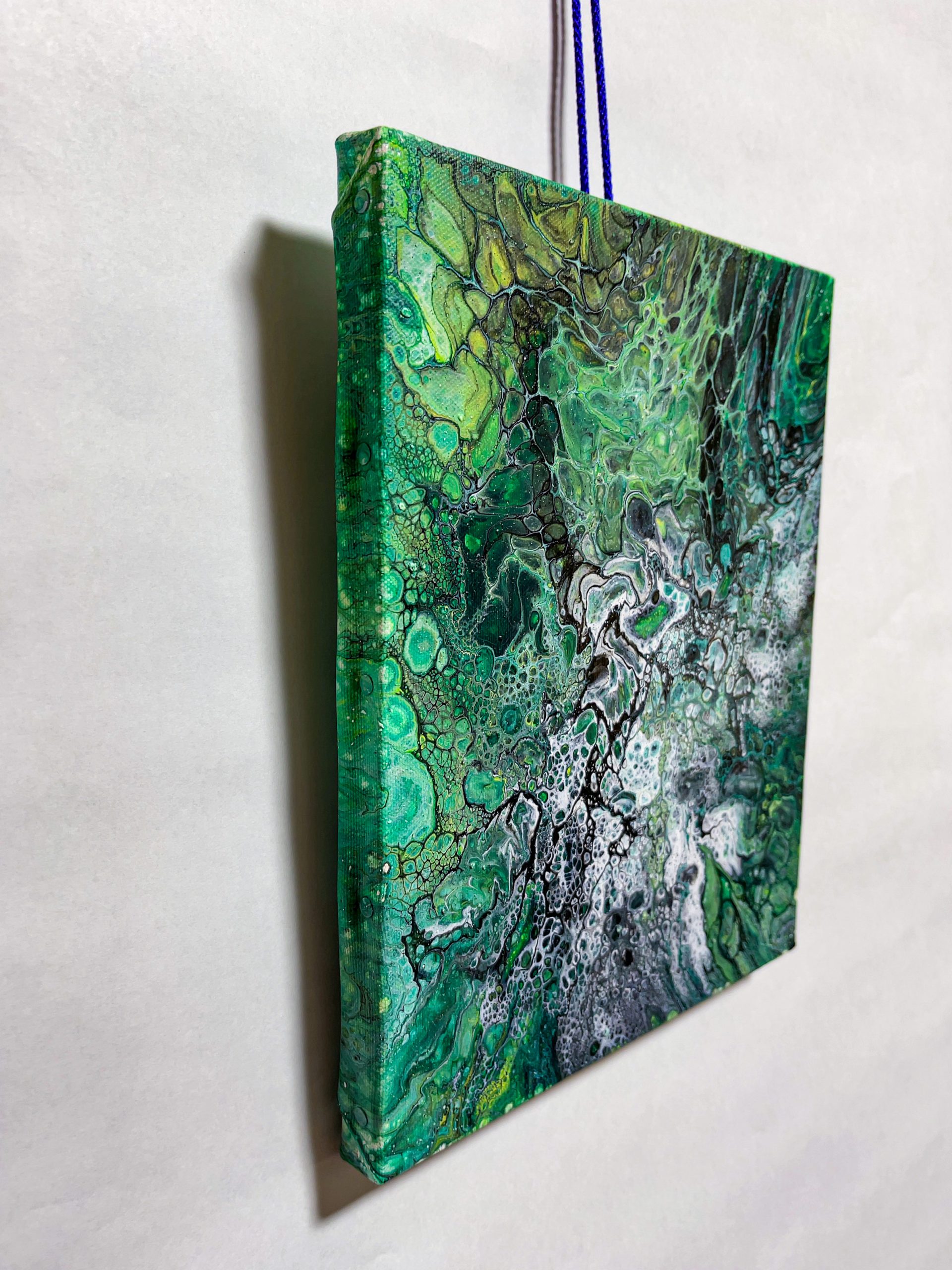 自然を象徴するグリーンが全体的に複雑な模様を作り、植物が持つ自己治癒力を表現した作品。