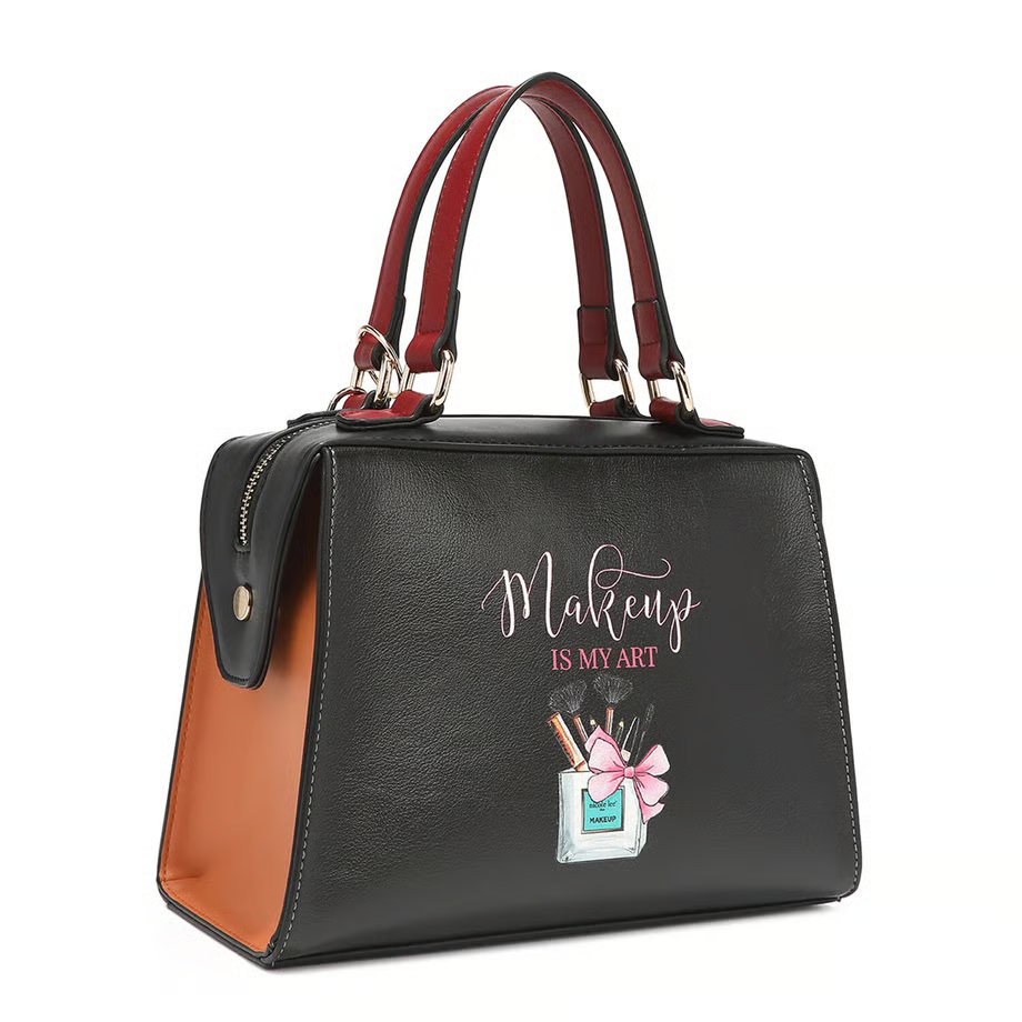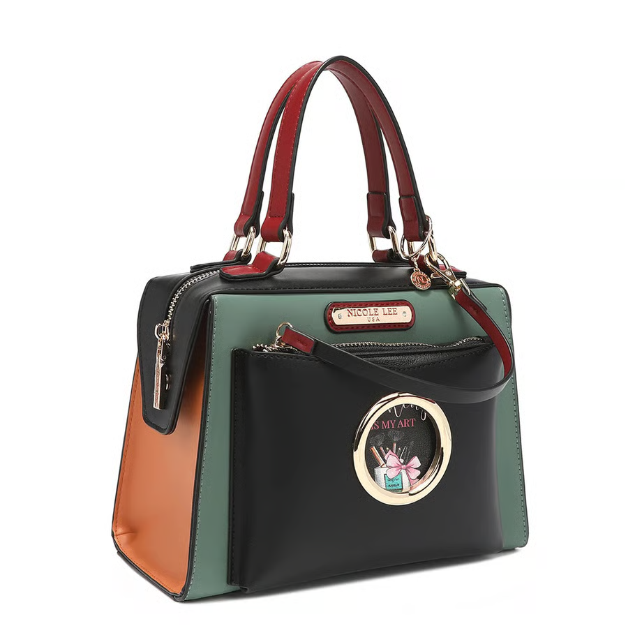 取り外し可能なフロントポーチが特徴のハンドバッグです。