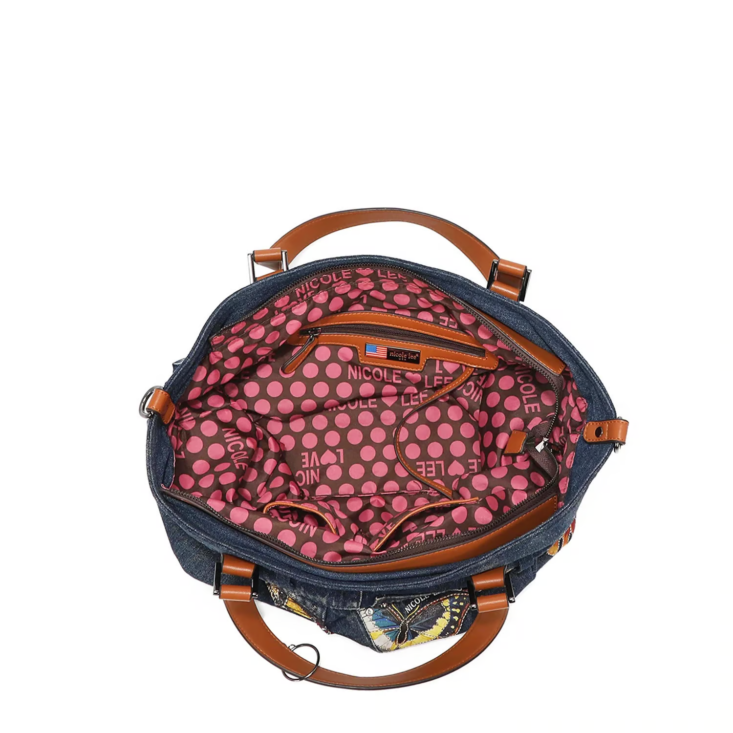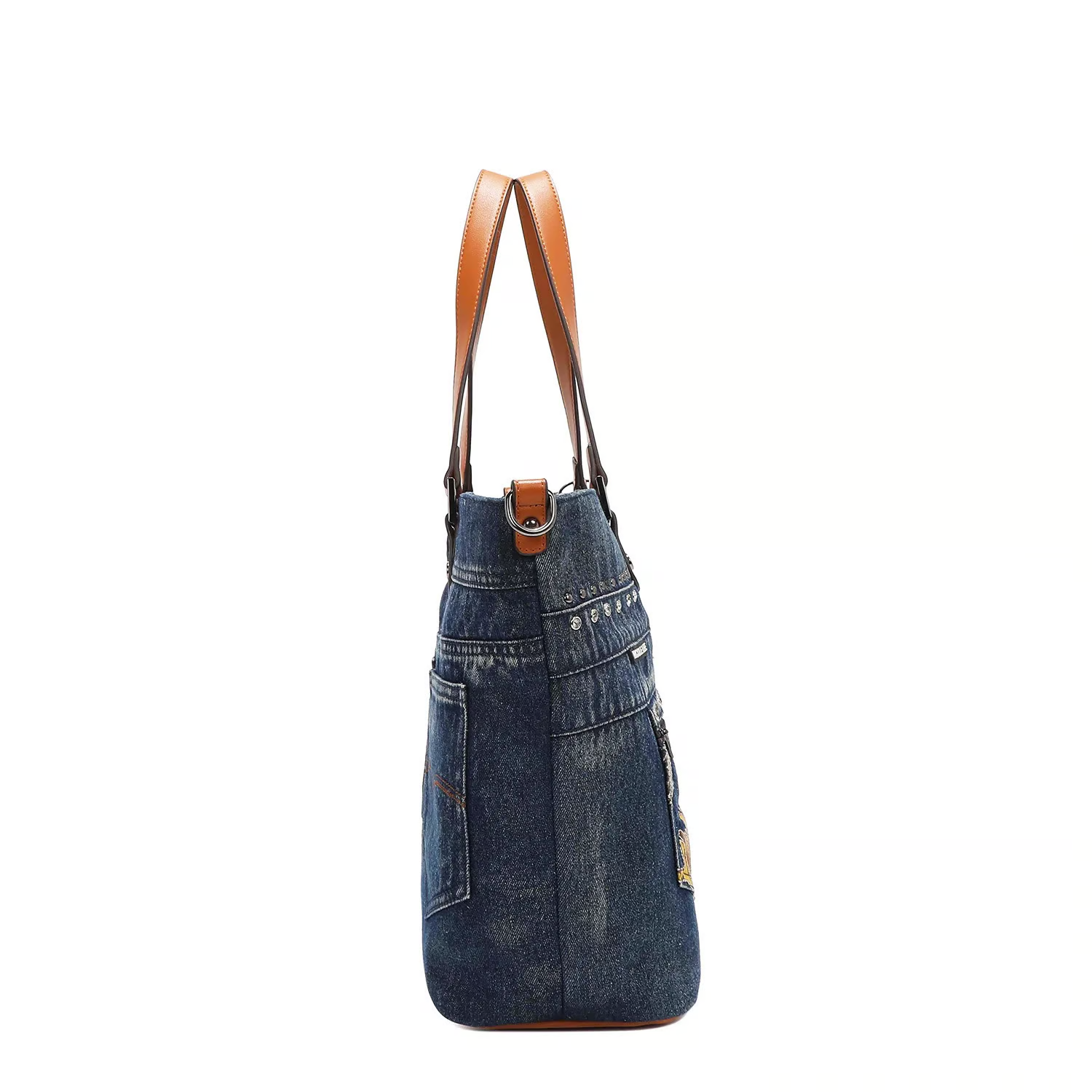 自然からインスピレーションを得て作成されたバターフラワーコレクション。ウォッシュドデニムで作られ、金糸ステッチのディテールで飾られたA4対応デニムトートバッグです。