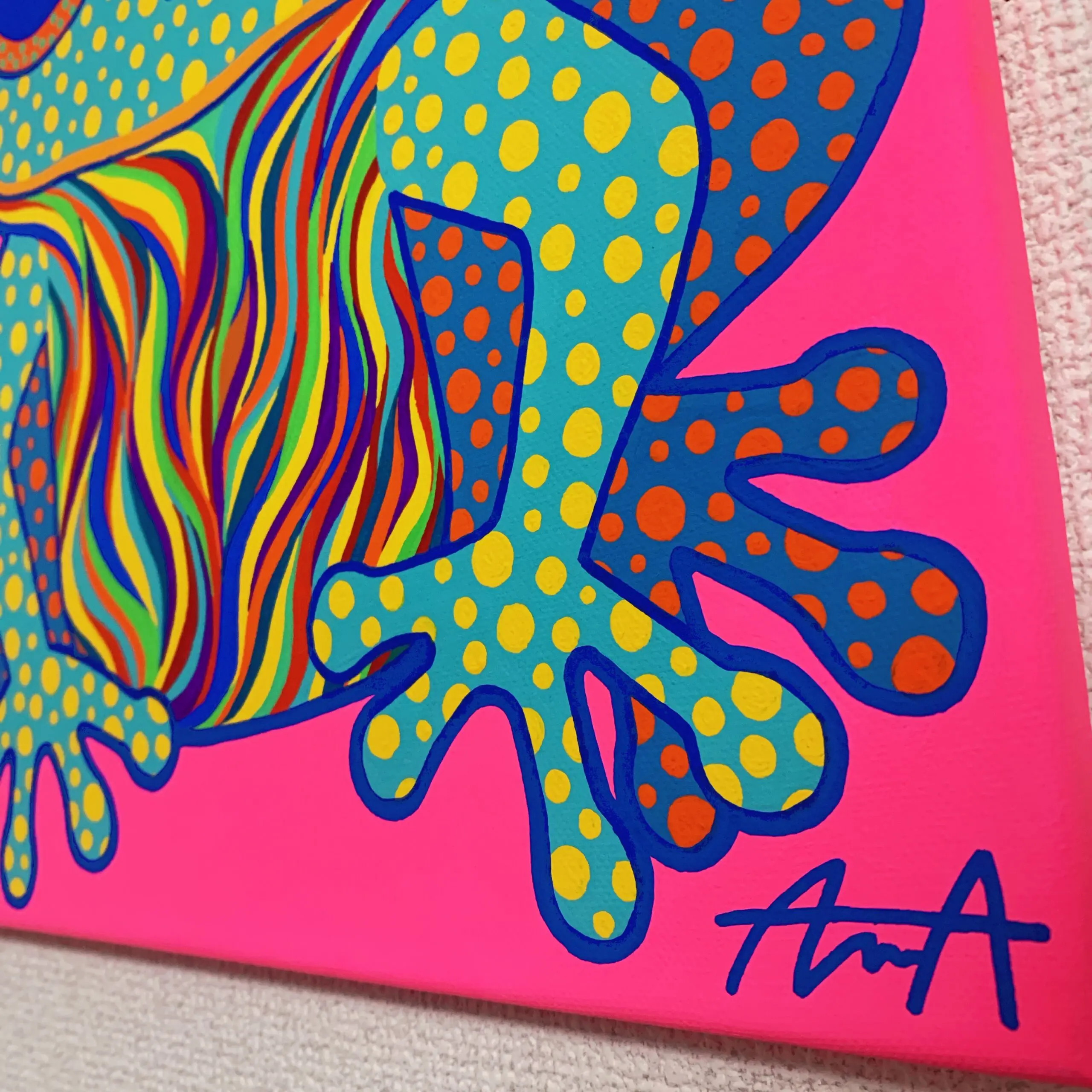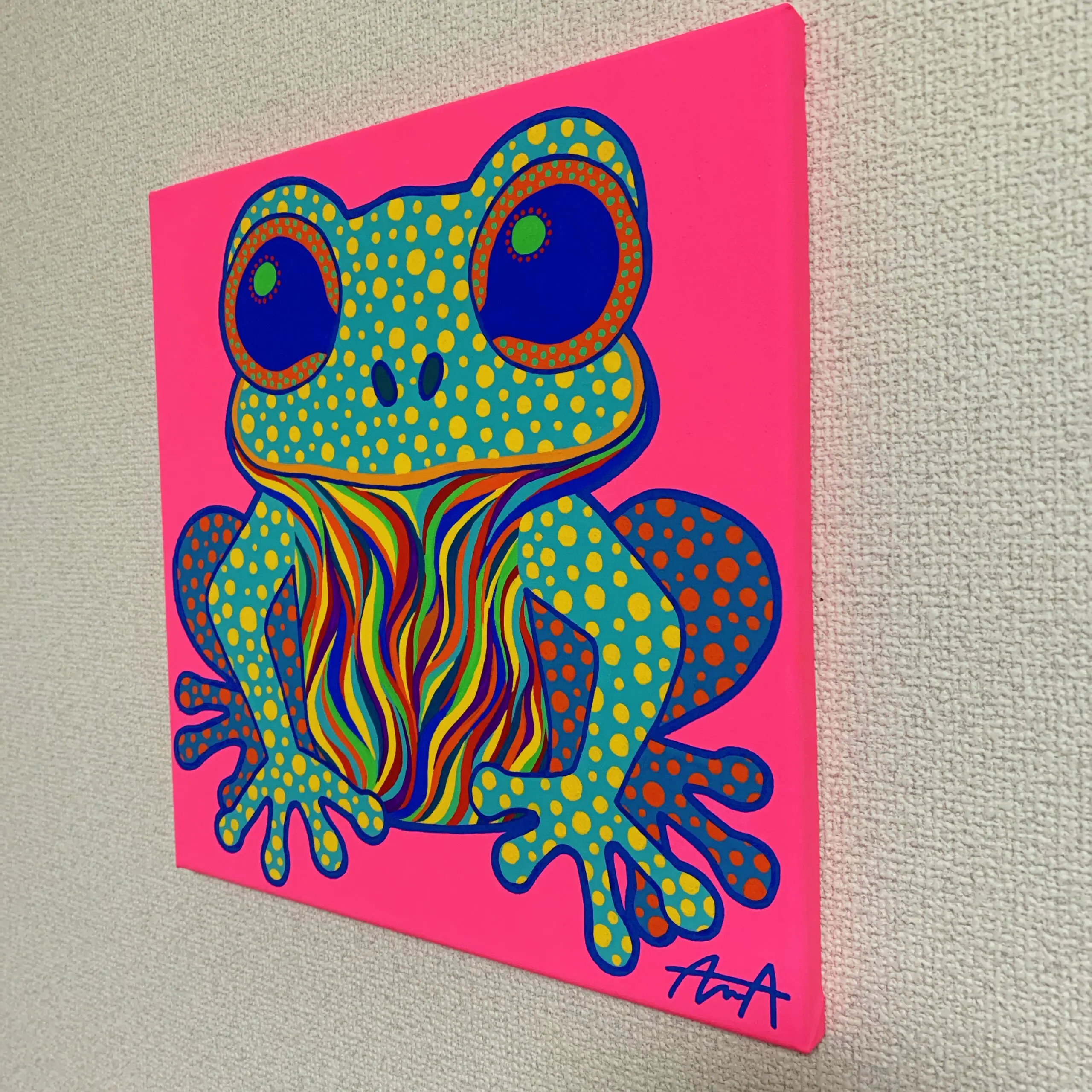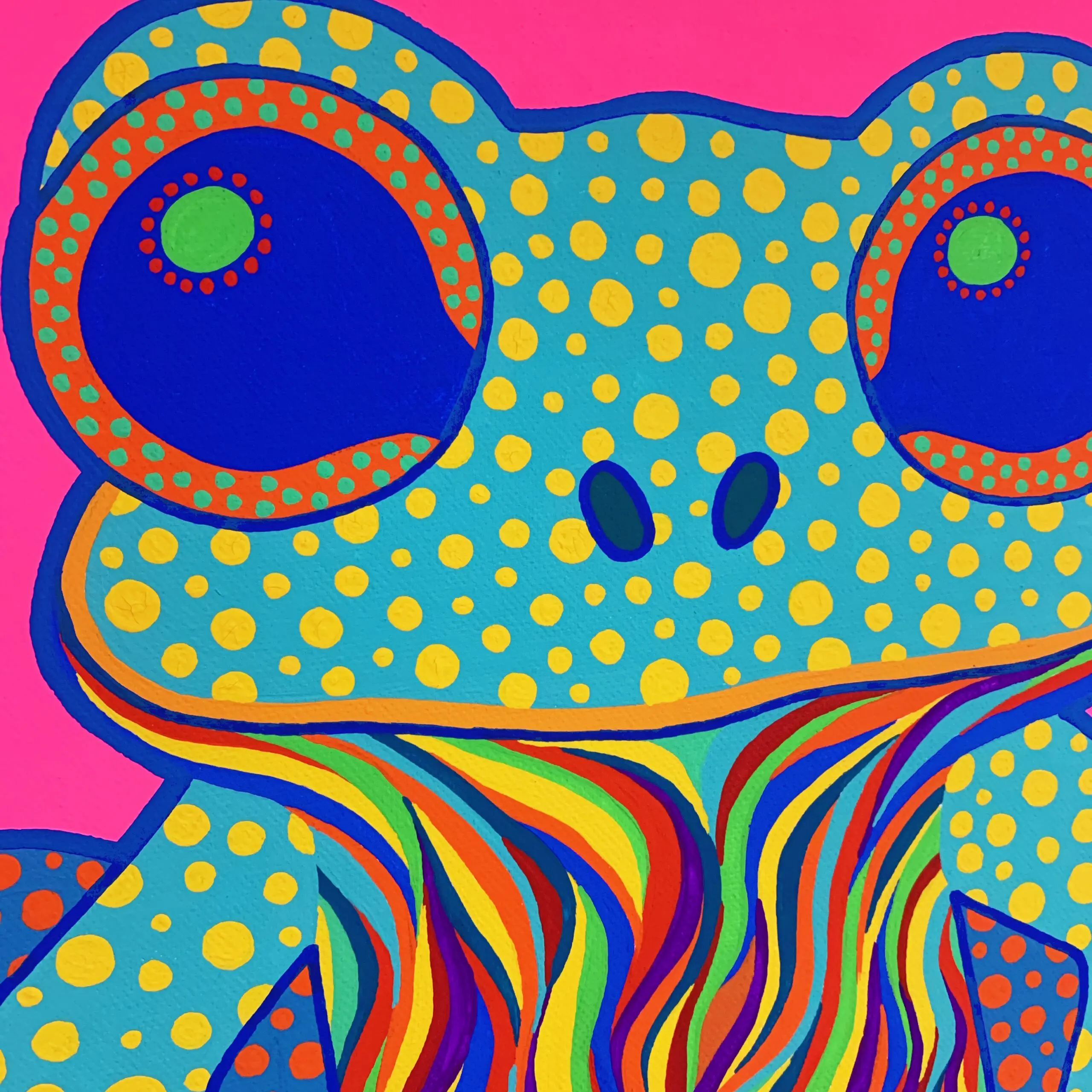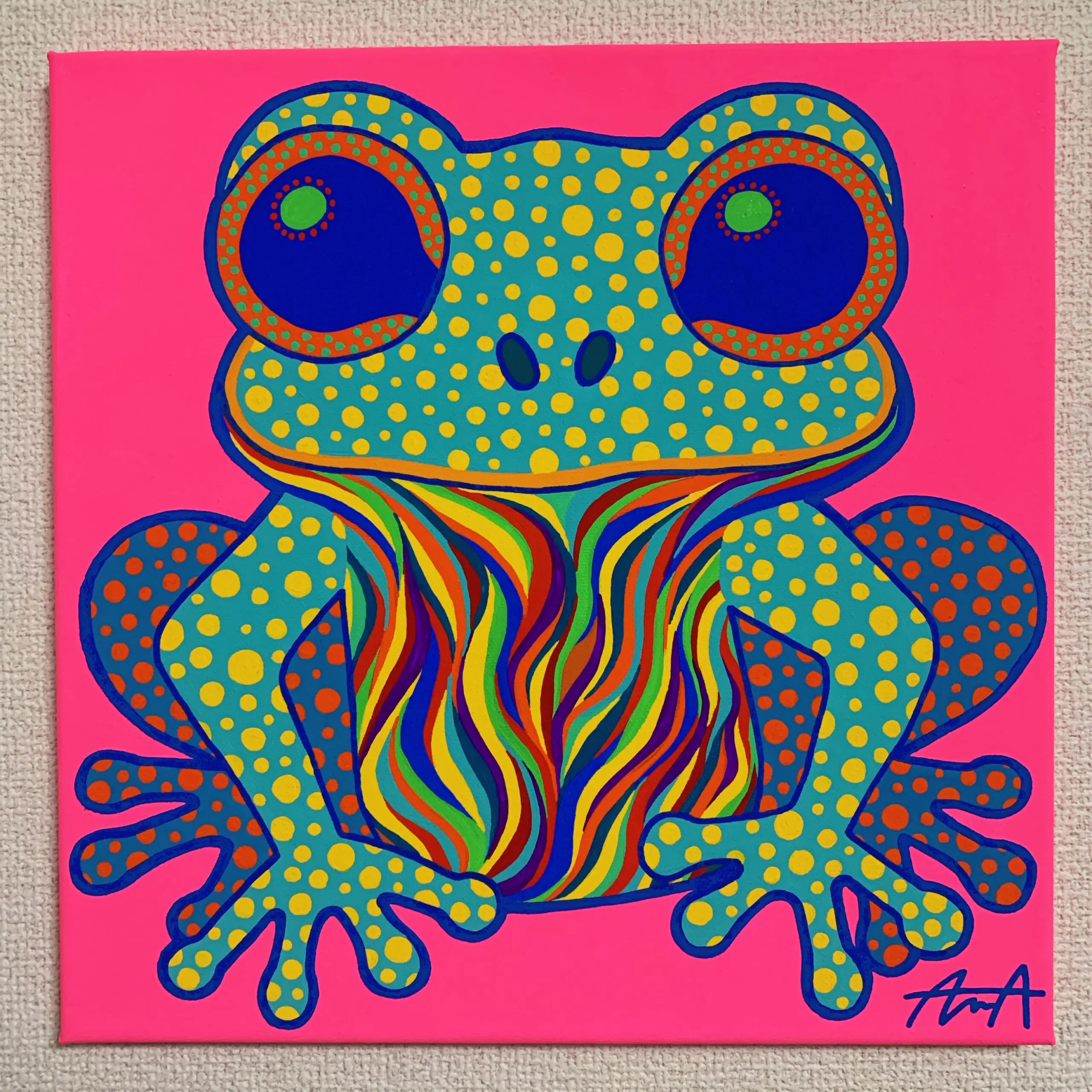 そんなカエルはいつも虹を見たいので、自分のお腹に虹色に変えてしまいました