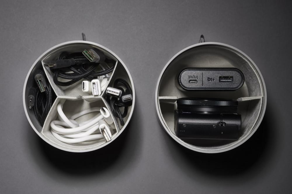 ケーブルやアダプターなどはメインスペースに、電池やSDカードなどの小物はサブスペースにそれぞれ分けて収納できます。
