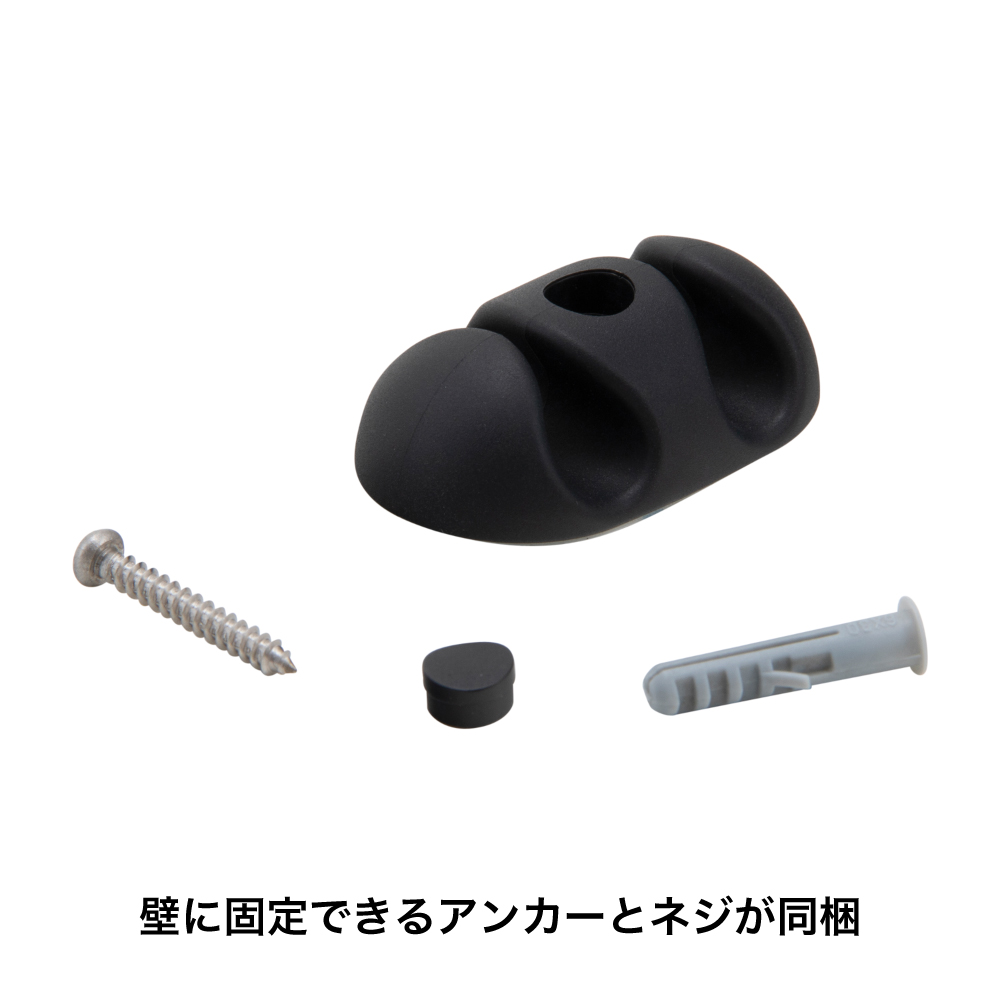 両面テープで貼り付けてデスクトップ周りで利用するだけでなく、ネジでより強固に壁へ固定することも可能。