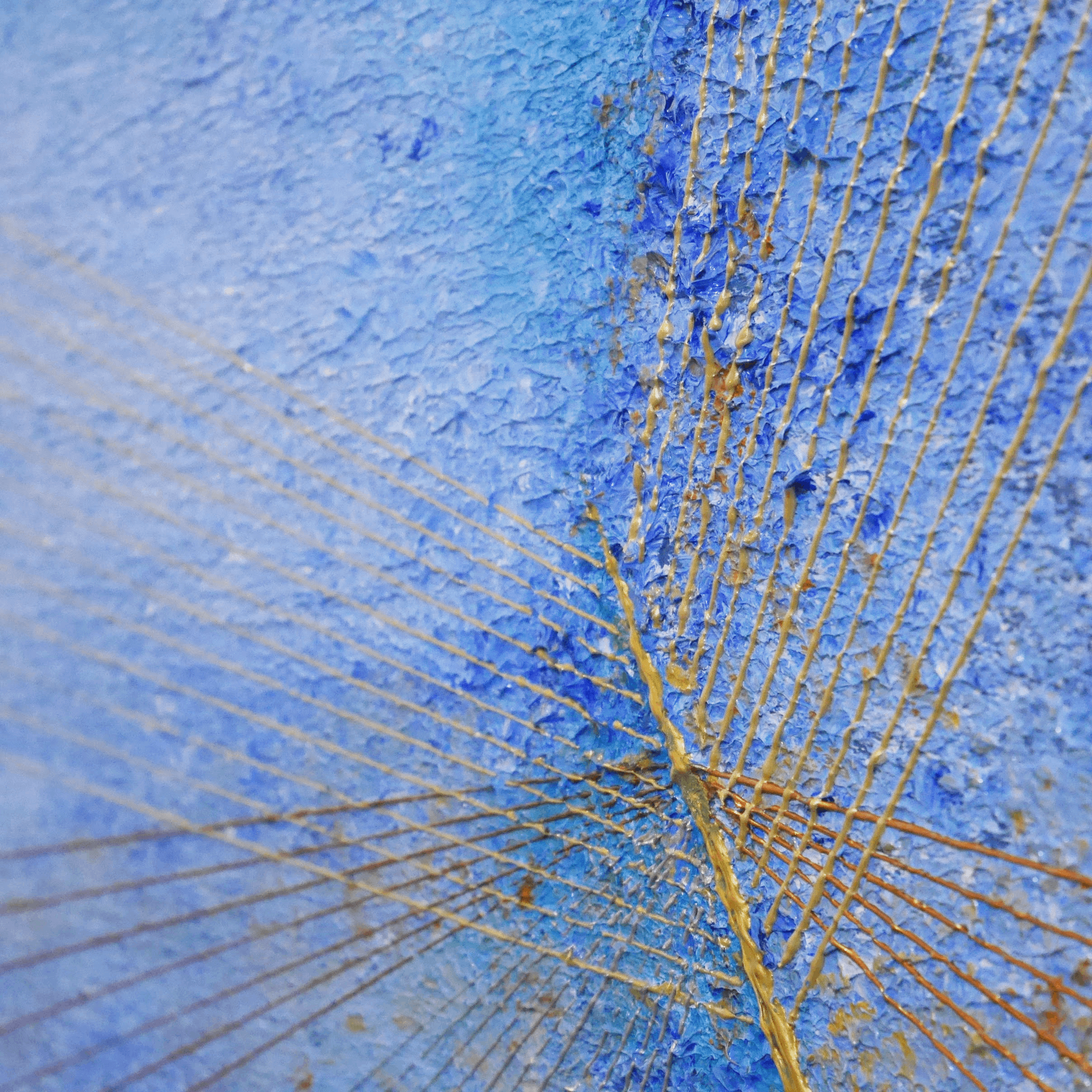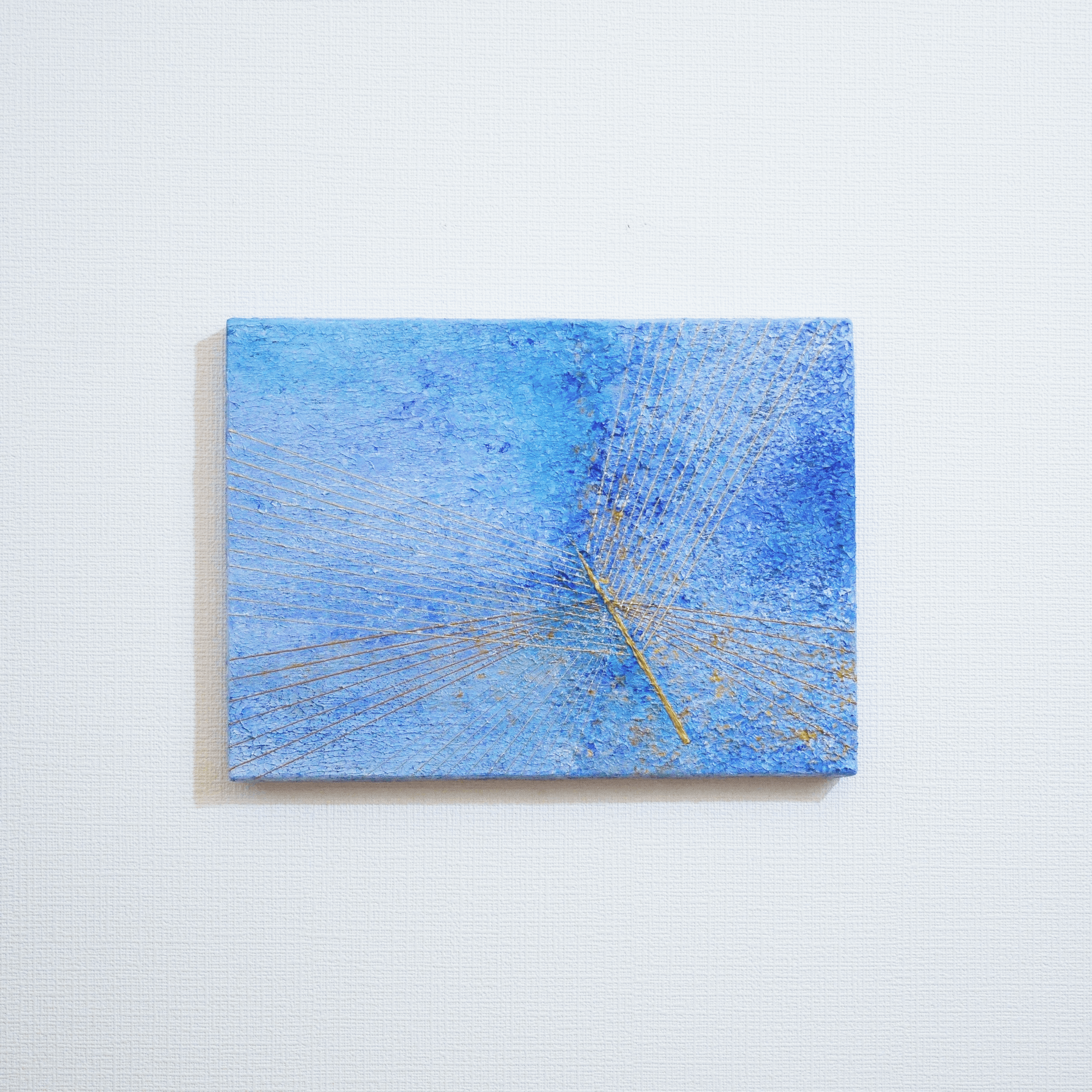油彩ならではの立体感のある水色描画に、網ような細線描画が金銀3色で表現されています。