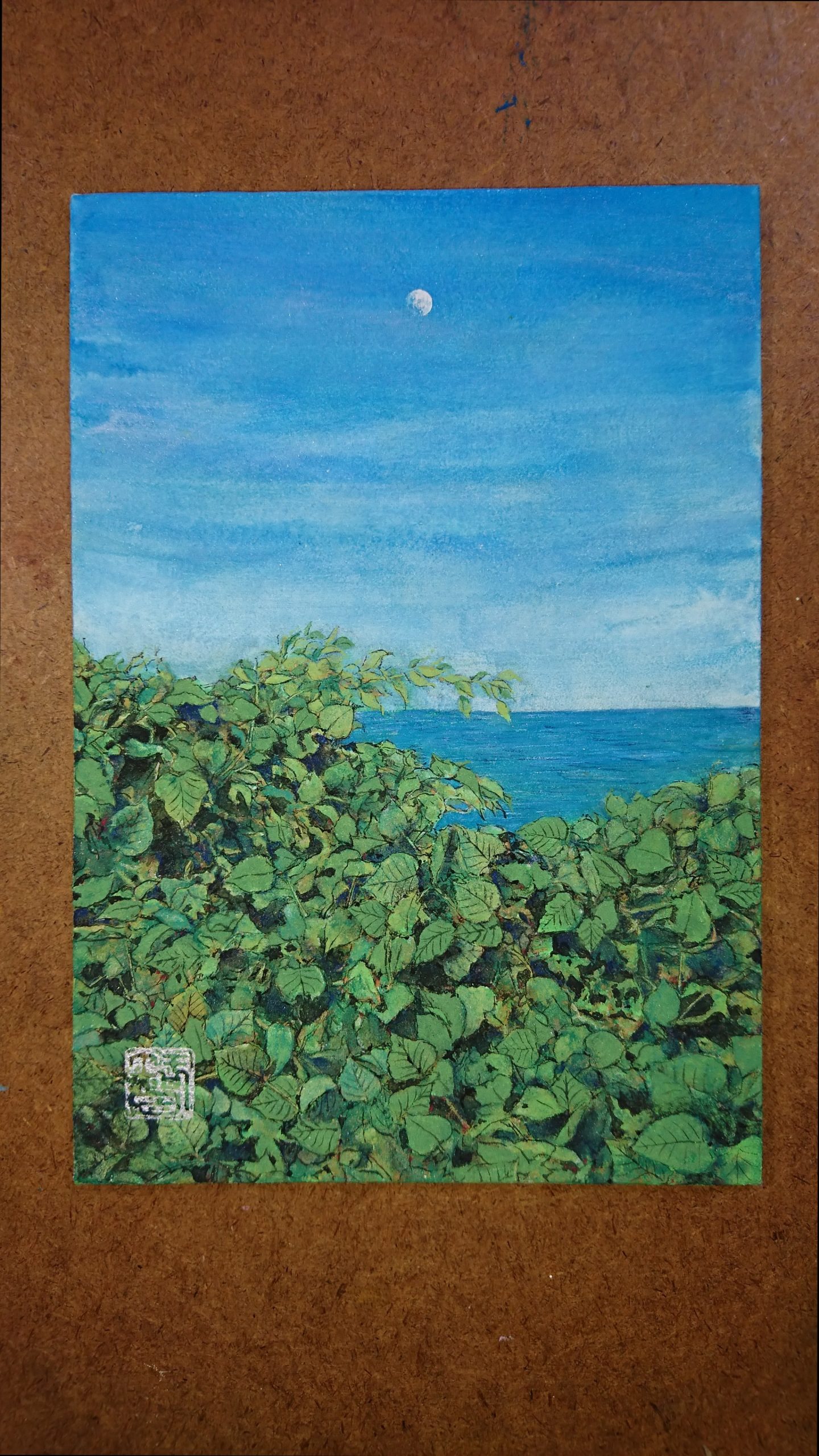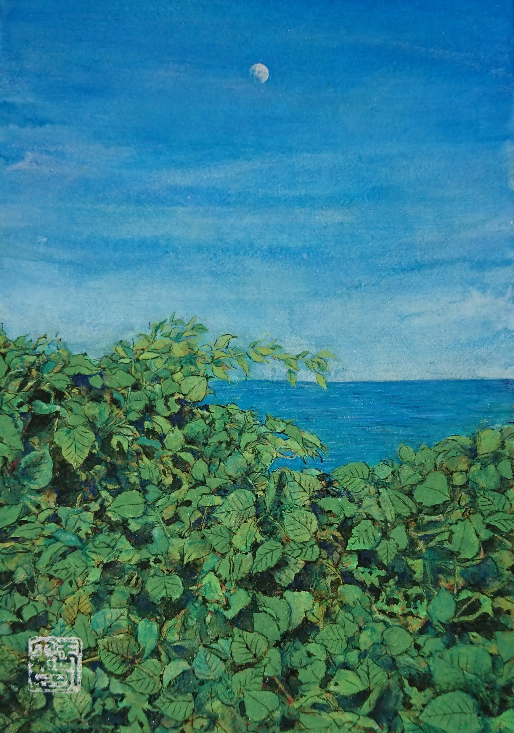 昼の月を見つけると不思議な気持ちになります。本当は高速で動いているゴツゴツした巨大な塊なのに、空に薄紙をペタッと貼り付けたような儚さに心惹かれるのでしょうか。