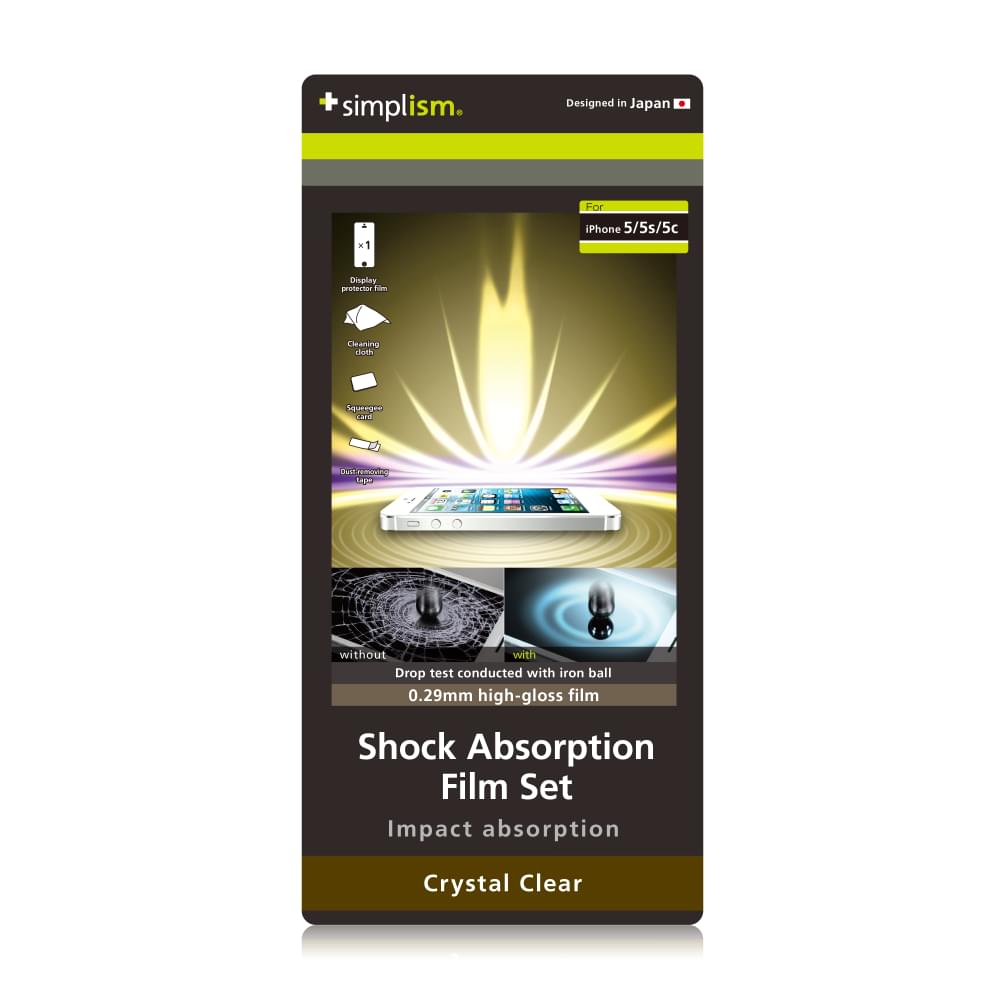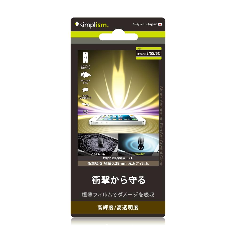 Simplism Shock Absorption Film Set for iPhone Crystal Clear(iPhone用 衝撃吸収フィルムセット(クリスタルクリア))は、iPhoneのディスプレイ面を強い衝撃から守る保護フィルムです。