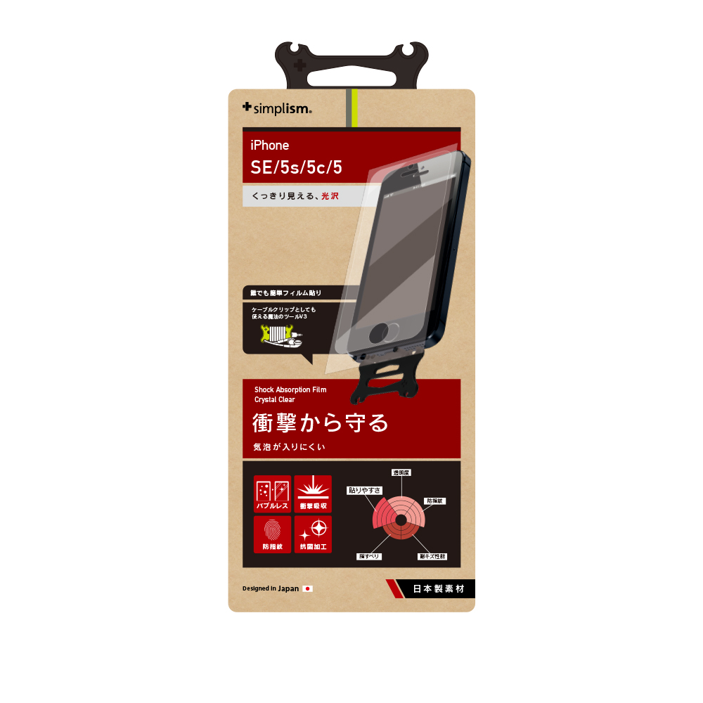 SimplismのShock Absorbing Film for iPhone 5se/5s/5c/5 Crystal Clear(衝撃吸収 液晶保護フィルム)は、デバイスを傷や埃からしっかりと守る、衝撃吸収タイプの光沢保護フィルムです。