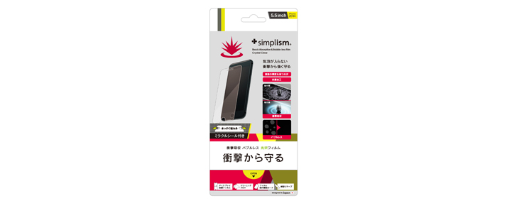 Simplism Shock Absorption & Bubble-Less Film for iPhone 6 Plus Crystal Clear(iPhone 6 Plus 衝撃吸収&バブルレスフィルム(クリスタルクリア))は、iPhoneのディスプレイ面を強い衝撃から守る保護フィルムです。