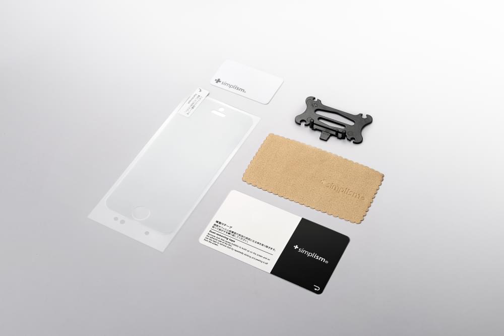 誰でも簡単に貼れるサポートアイテムを付属しました。貼付前に、マイクロファイバー素材のクリーニングクロスでディスプレイ上の指紋などの汚れを取り除き、埃取りテープを使い埃を完全に除去、気泡は貼付補助カードを使い押し出します。