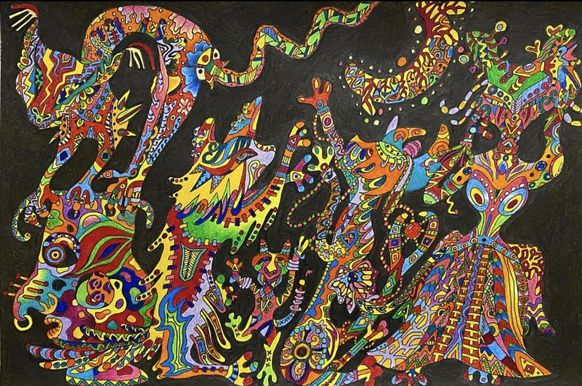 人間が寝静まった夜に広場で踊っている猫たちを描きました。