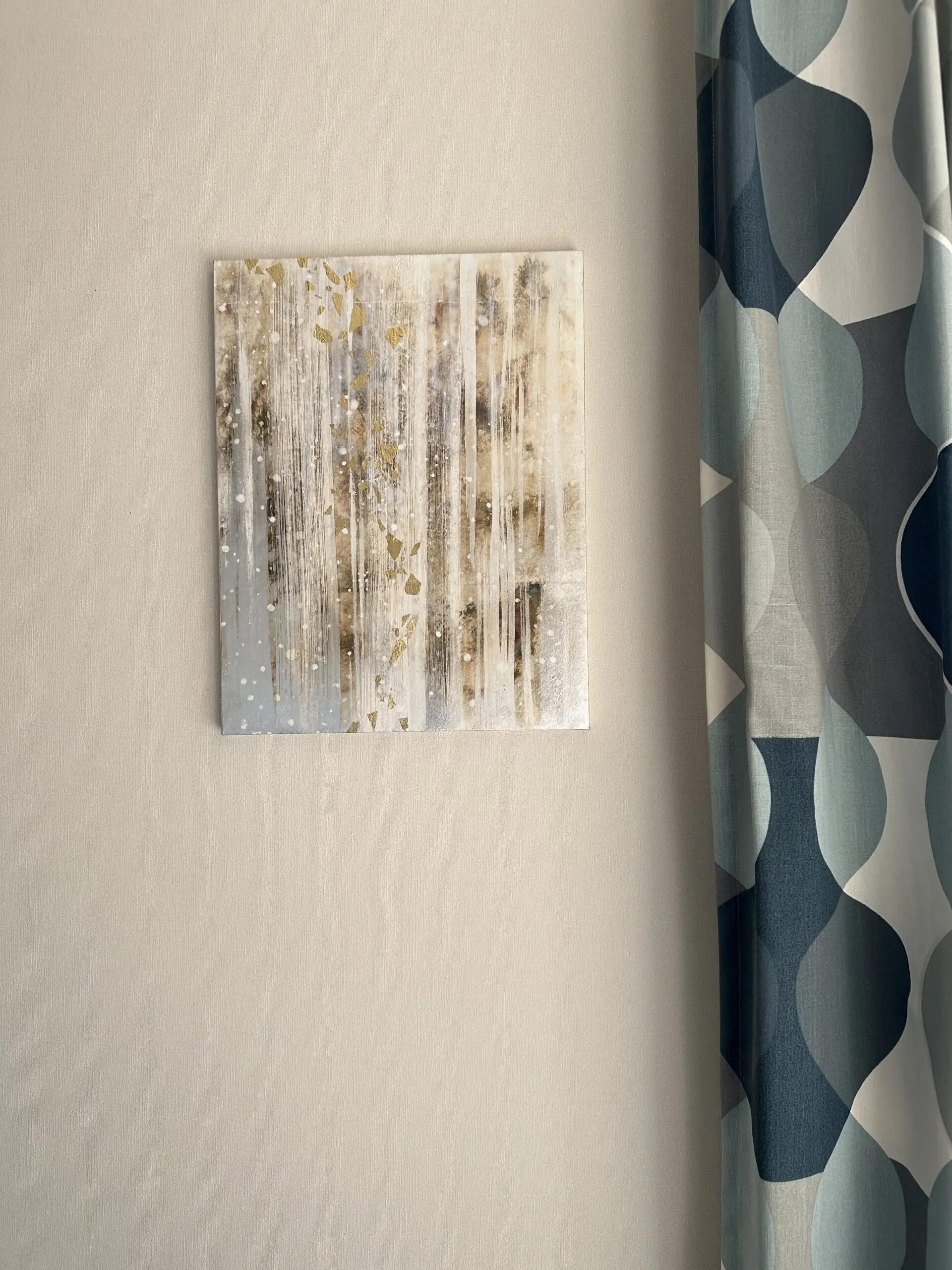 箔を使用していますので光のあたり方によって輝き方が変わります。日中の窓から入る自然光、夜の照明の光など、光の違いにより表情がかなり変わります。