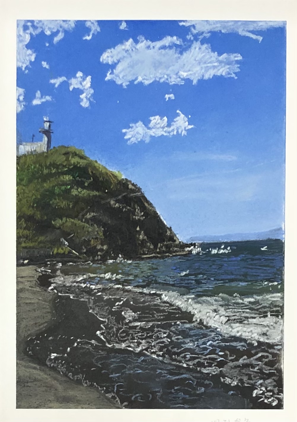 穏やかでありながらどこか力強さを感じる日本海。新潟の海を描いた。