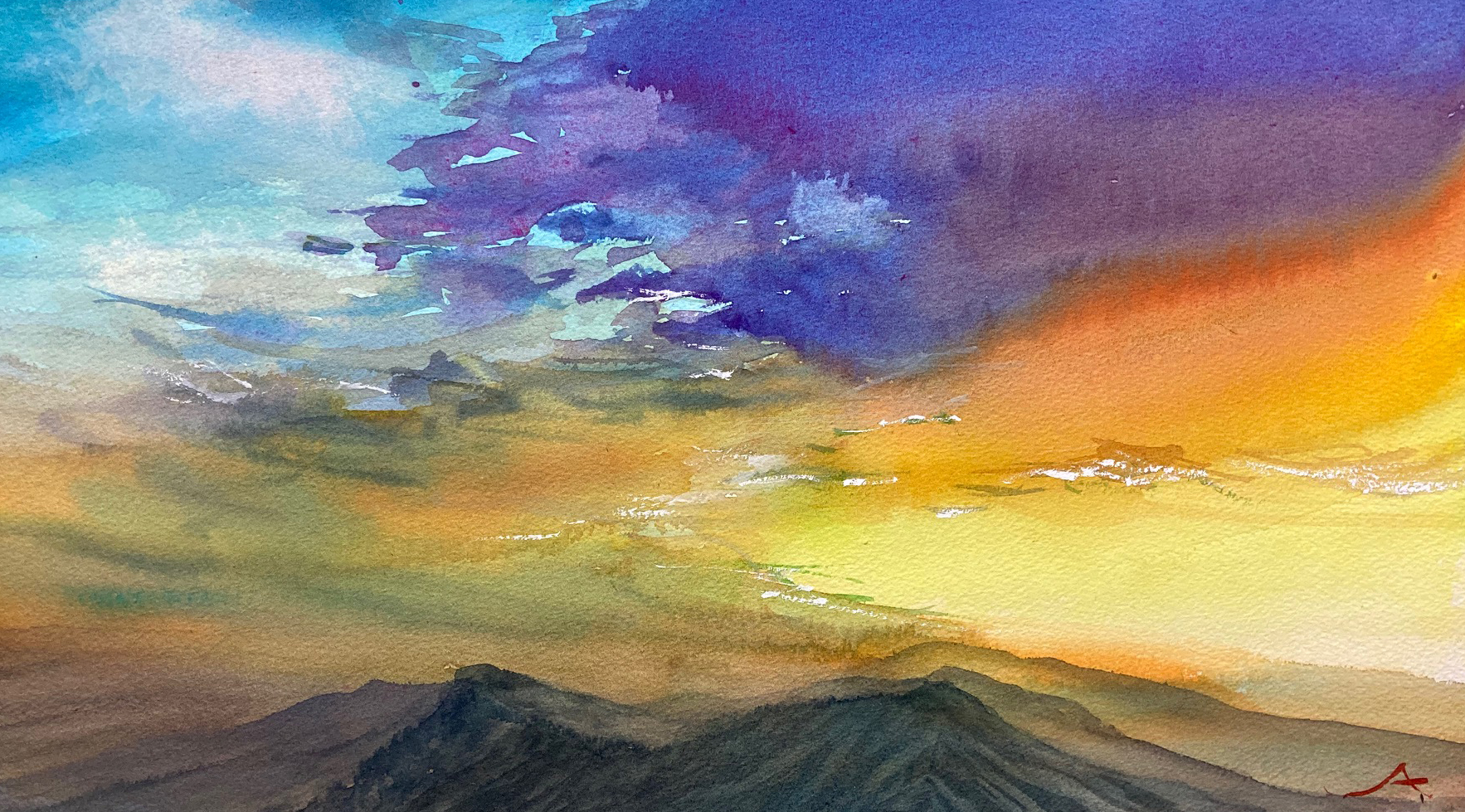 山に登った時の一瞬の風景を透明水彩を使用して制作いたしました。