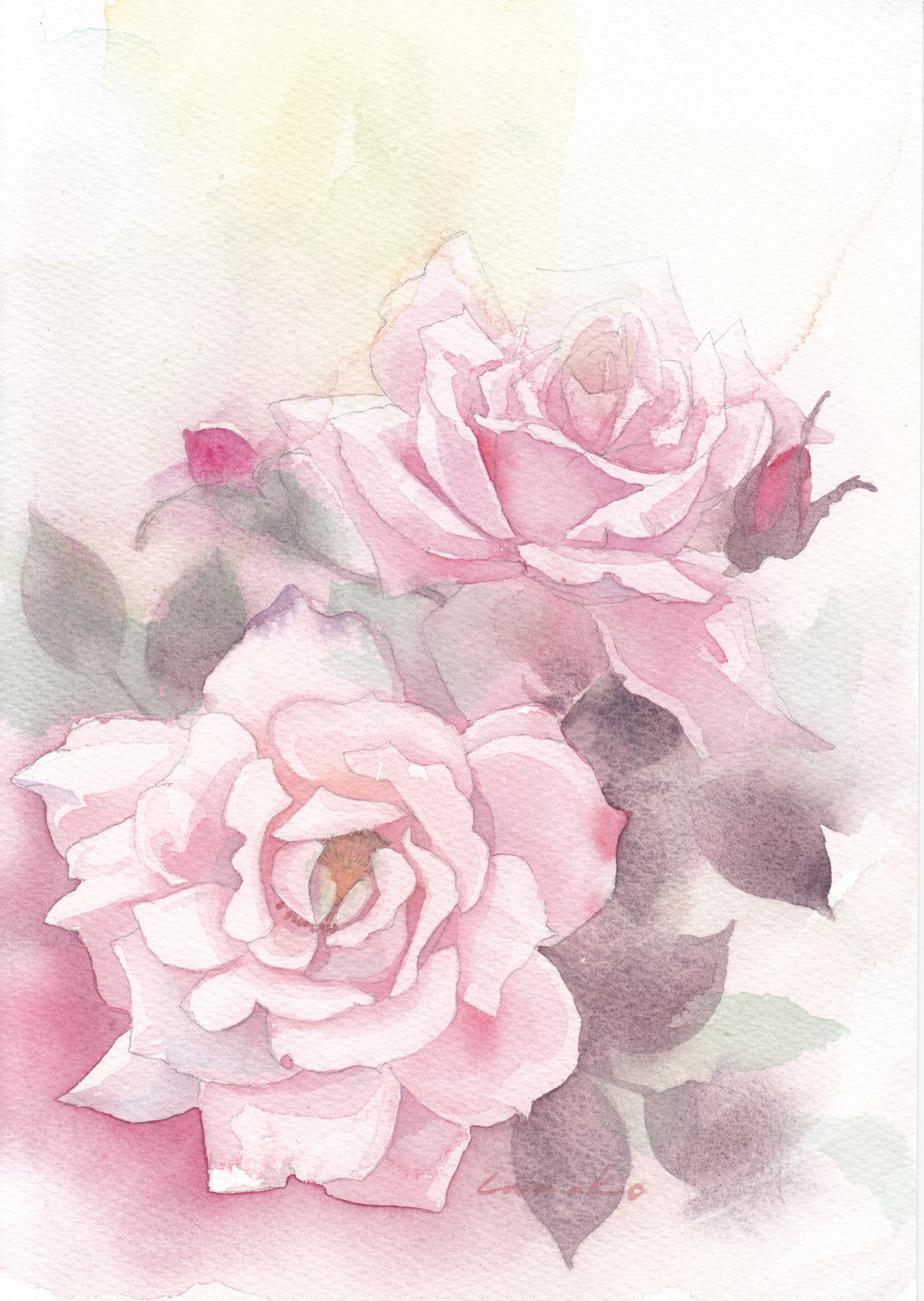 このバラは花弁が多くない優しげな花で、その花びらの柔らかさを描きたいと思いました。色合いは多少異なります。