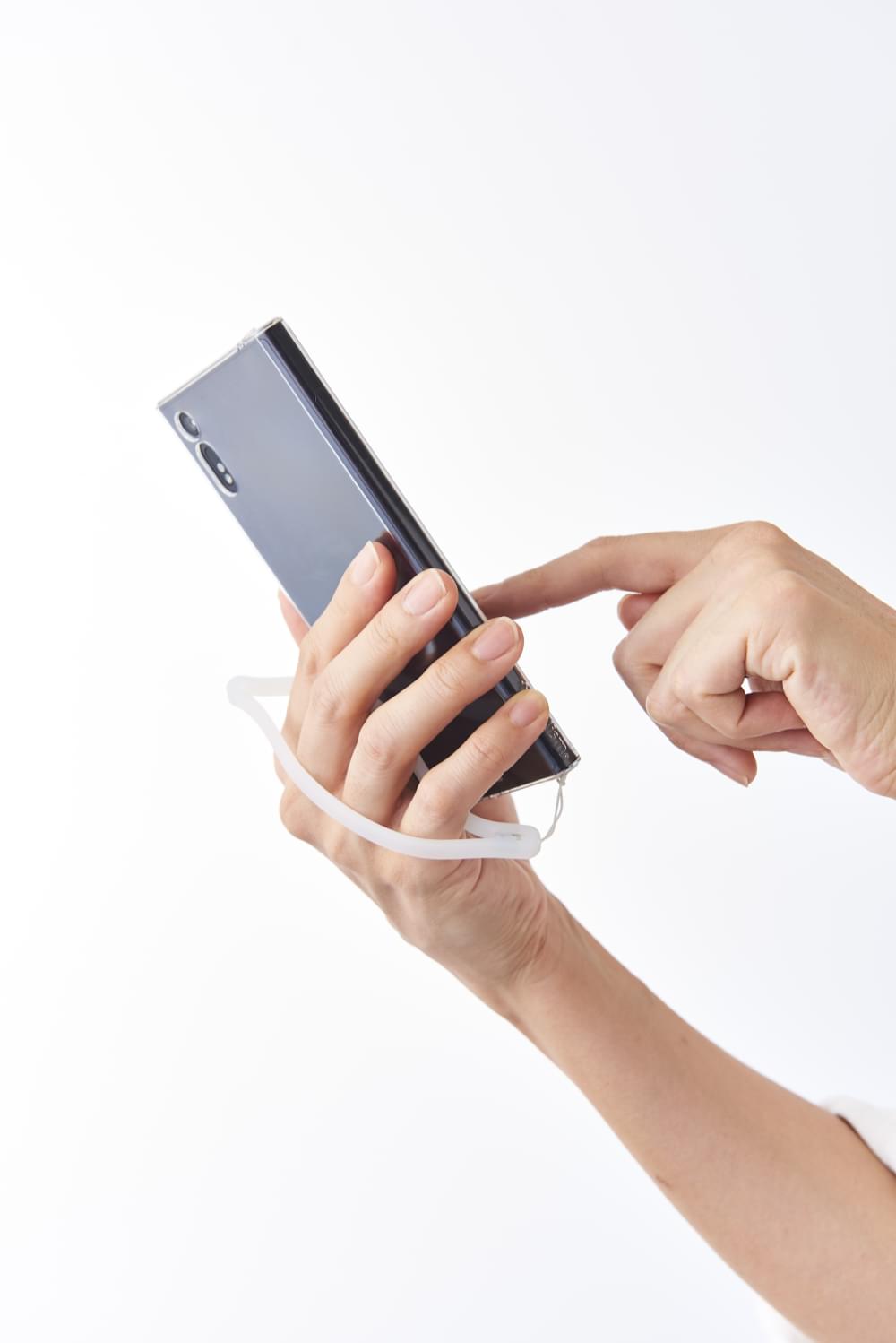 本製品にはシリコン製のハンドストラップを付属しています。ストラップに指を通したまま操作しやすく、万が一の落下からしっかりと防ぎます。もちろん一般で販売されているストラップを使うことも可能です。