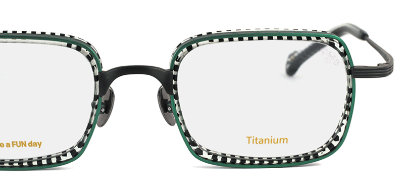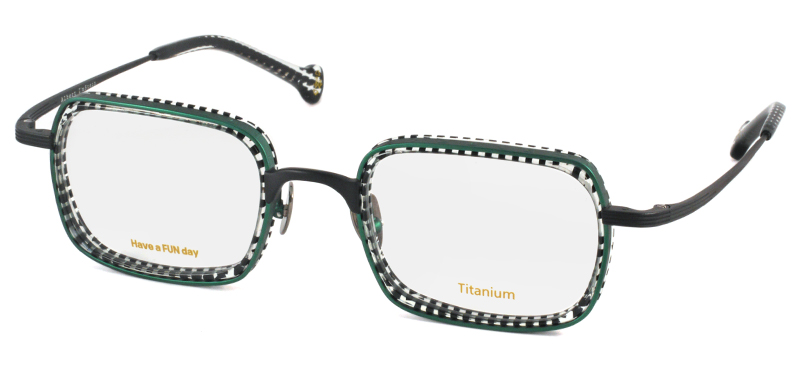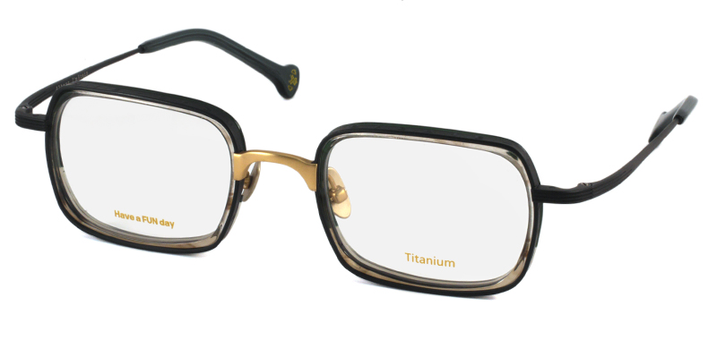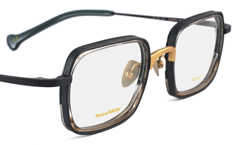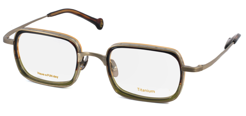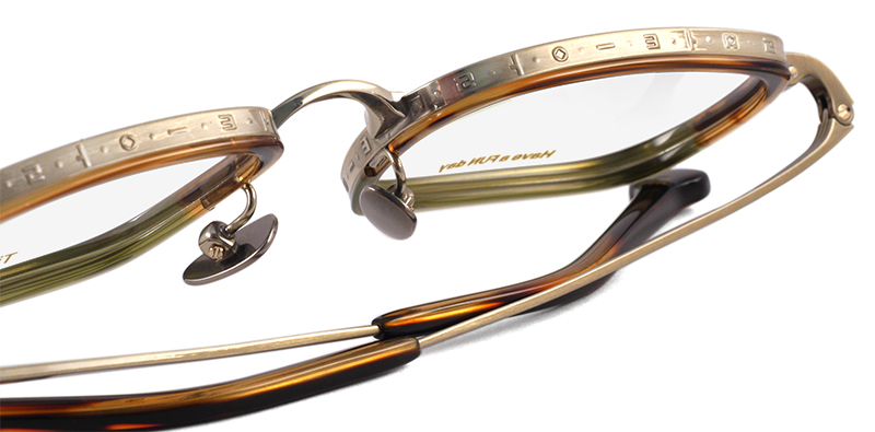 メタルリムの内側にプラスチックリムを組み合わせたインナーリムスタイルのスクエアフレーム。色合わせがとてもユニークで、プラスチックリムの有機体のような生き生きとしたカットも特徴的。リムにはハングル語で「アインシュタイン」の刻印が施されています。 size:レンズ横幅48mm 縦幅35mm レンズ間距離23mm フロント幅146mm 素材:金属部/チタン、インナーリム/アセテート(プラスチック) 生産国:未発表