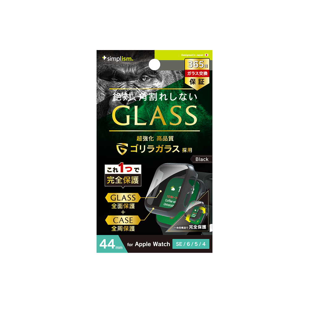 Apple Watch 44mm SE(第2世代)/ SE(第1世代) / 6 / 5 / 4 ゴリラガラス 高透明 ガラス一体型PCケース