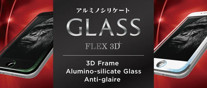 [FLEX 3D] 3D Frame Alumino-silicate Glass for iPhone Anti-glare(立体成型フレームアルミノシリケートガラス 反射防止)は、PETフィルムとしなやかで割れにくいアメリカCorning社製アルミノシリケートガラスを複合することにより、角割れせずに画面のフチまで守る究極のアルミノシリケートガラスプロテクターです。