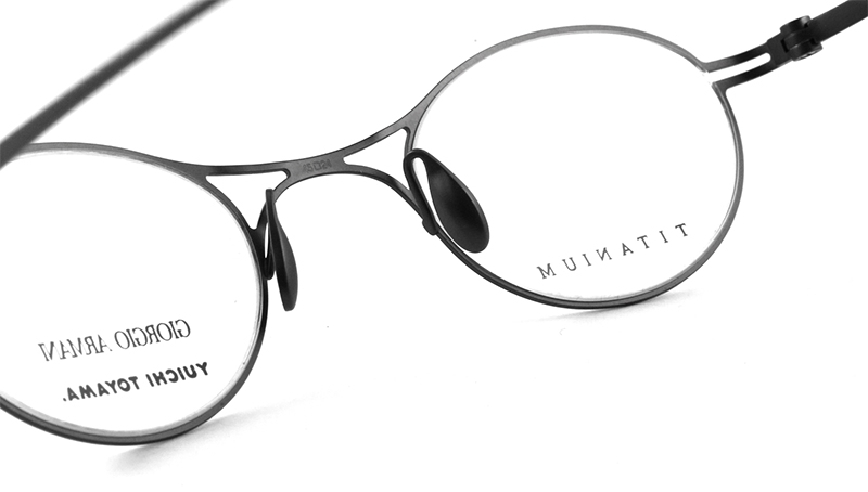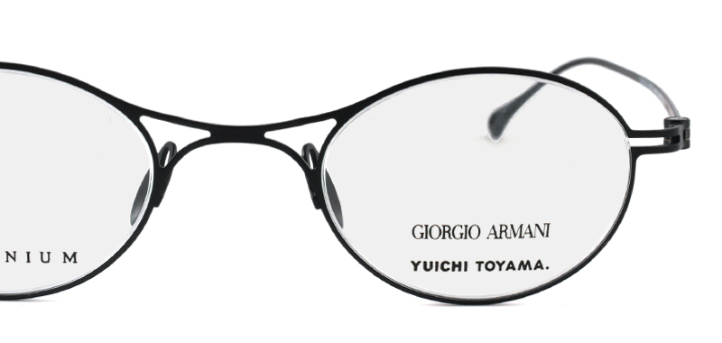 ジョルジオ・アルマーニアイウェアのアーカイブの中でも最もアイコニックなオーバルシェイプのXブリッジフレームをアップデート。チタン素材のシートメタルを使用したミニマムなデザイン、小さいレンズサイズが非常にエレガントな雰囲気です。左側蝶番にジョルジオ・アルマーニのロゴ、右側蝶番にユウイチトヤマのロゴが刻印されています。