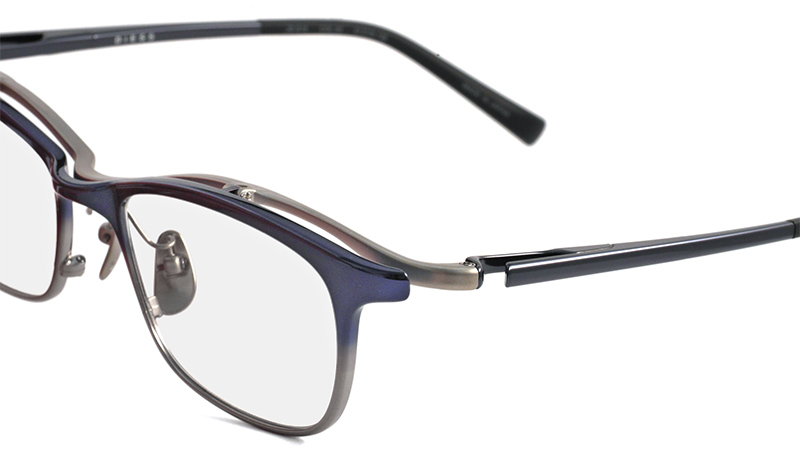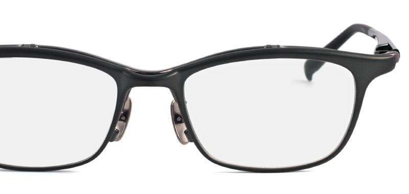 また、チタンパッドは特殊なブラスト加工を施した汗でも滑りにくいマット仕様。左右一体のパットアームは根元部分を太くし耐久性と調整のしやすさにも拘った新形状です。フロント、ワタリ、バネ、テンプルとキーパーツをジョイントさせることで表現できる独自のカラーと質感のコンビネーションも特徴です。