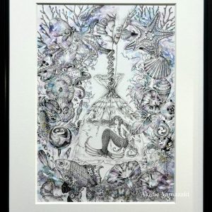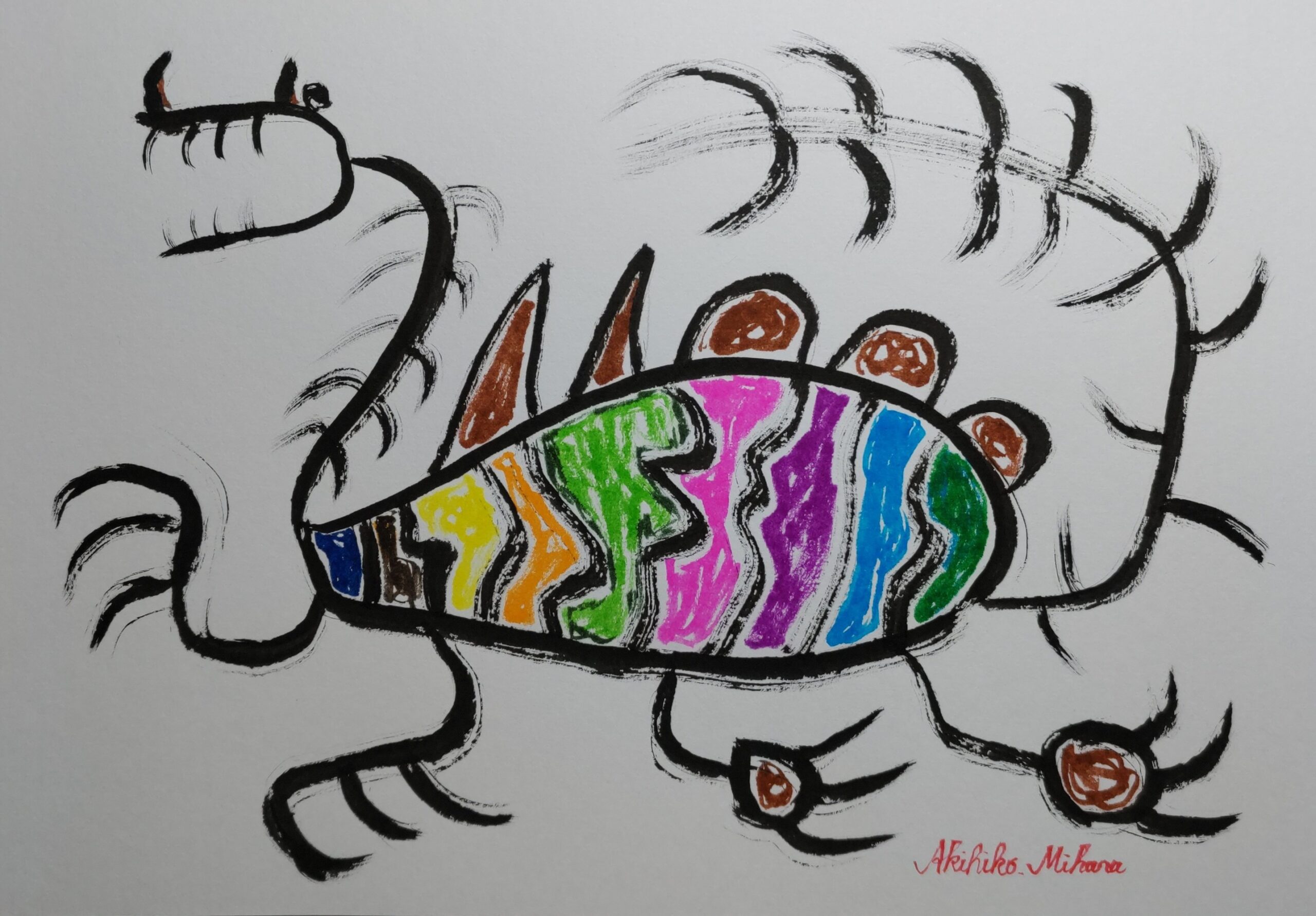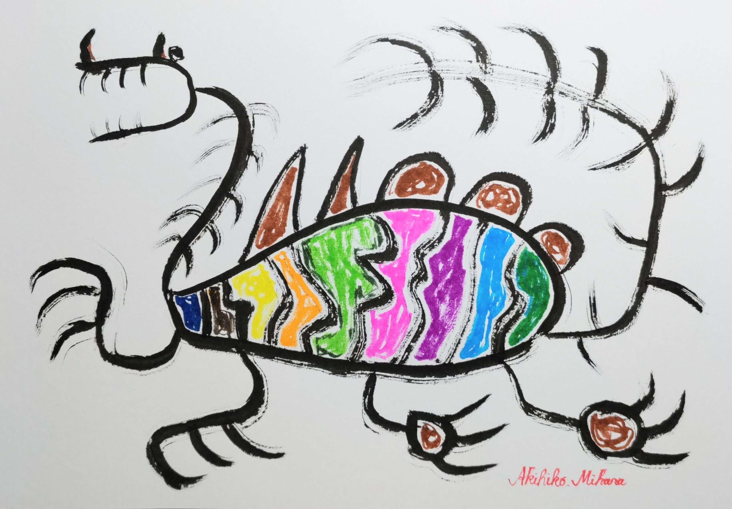 A4サイズの画用紙に筆ペンと鉛筆等で描きました。