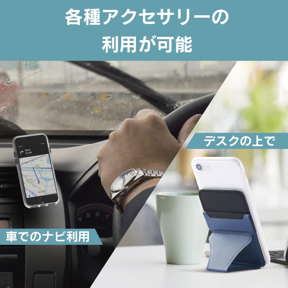 また、本製品を取り付けていない時はMagSafeに対応した各種アクセサリーをご利用いただけるようになります。スマホスタンドやカードポケット、ノートPCホルダーなど様々な便利なアイテムを楽しめるようになります。