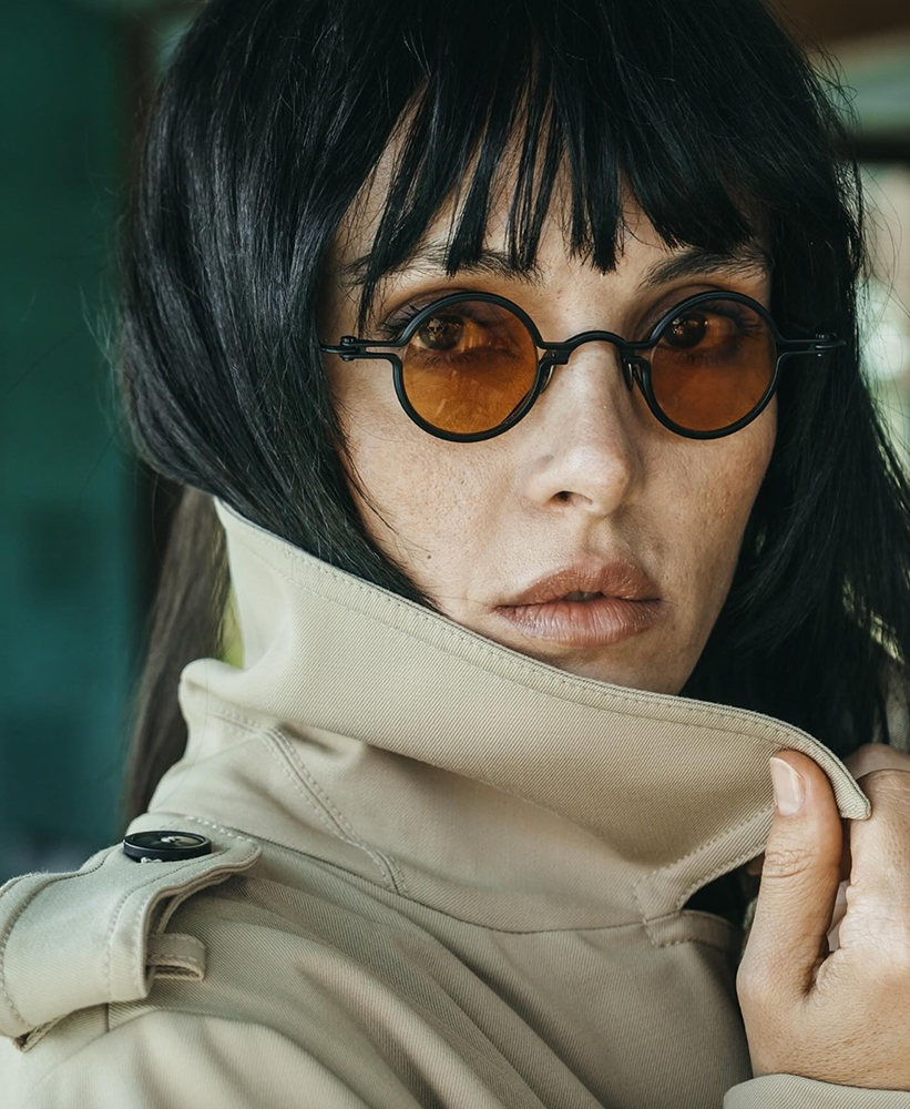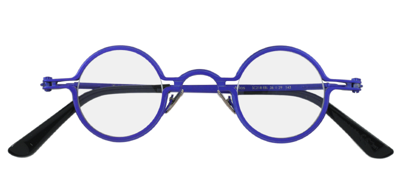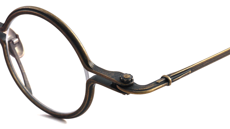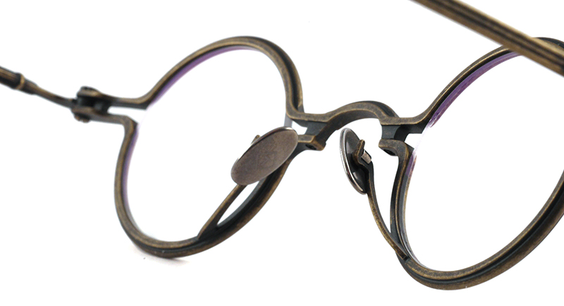 ヴィンテージフレームなどでもよく見られる極小ラウンドフレームですが、限りなく現代的。レンズシェイプはほぼ正円です。カラーレンズに交換して、サングラスとしての着用もクールなメガネです。