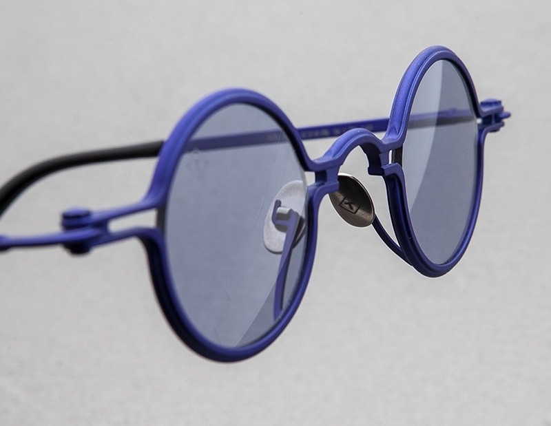 最も印象的なコレクション「SOUPCAN(スープカン)」は、構造が個性的なフロントデザインの他にも、蝶番ネジの代わりにスイス製の精密な時計のリューズを使用するなど、他に類を見ないユニークで機能的なアイウェアとなっています。
