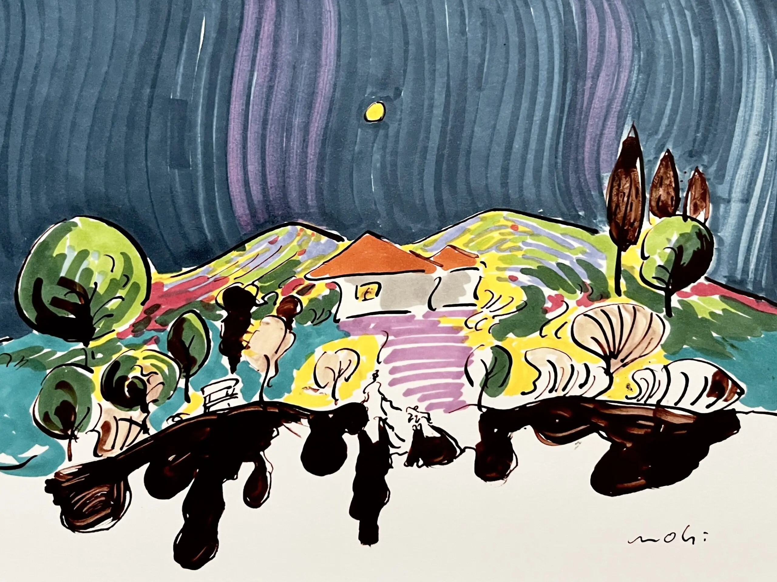 街も木々も、満月に照らされて、
