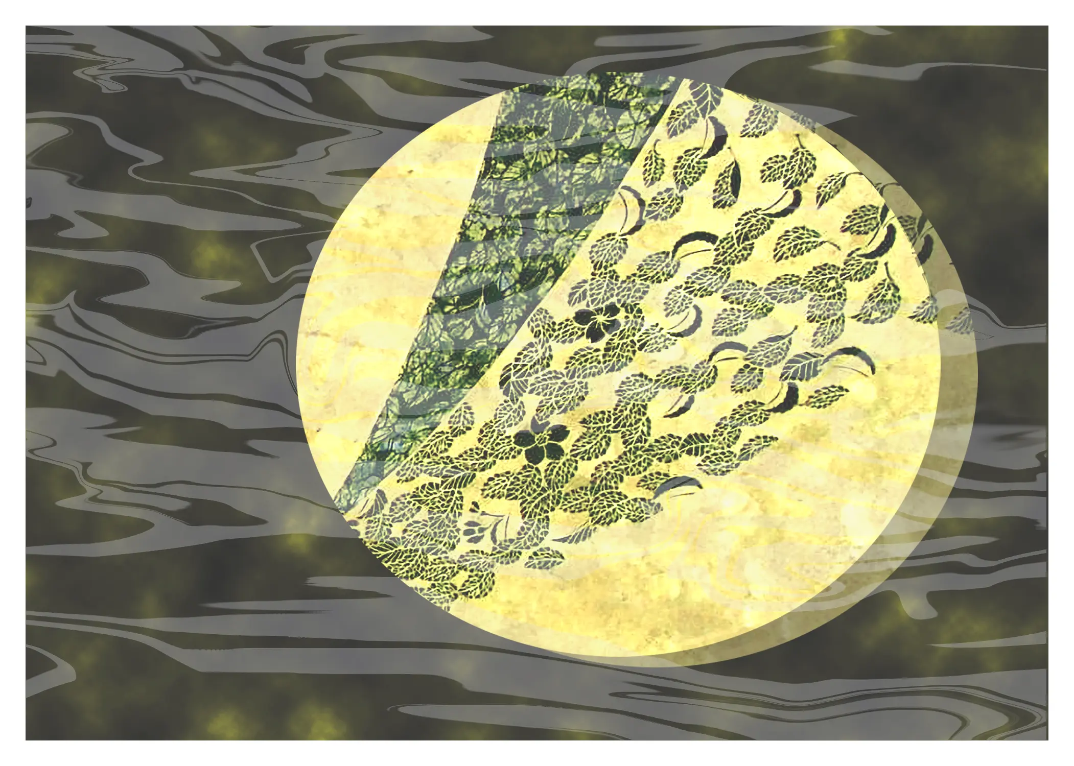 和紙を染め、文様を切り、レイヤーする独自技法によるアブストラクト=【Cut & Put Art】を製作しています。本作はその原画を取り入れたアート写真・額付きです。